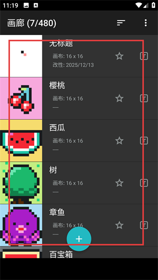1、在画廊页能看到已创建的像素画列表,点目标作品就能进入编辑界面,开始调整像素内容啦。