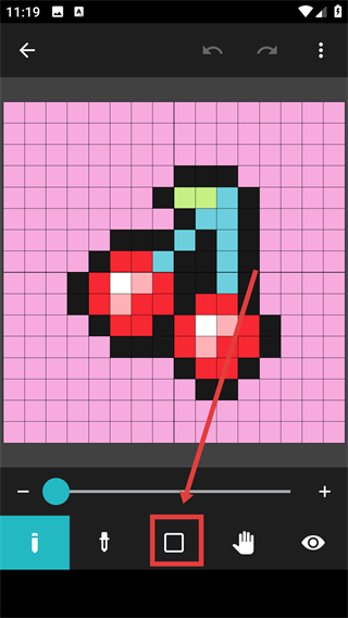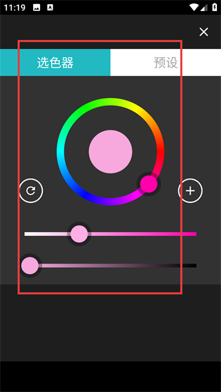 3、进入【选色器】界面,能通过色环和滑块调整颜色,选好后就能给像素区域填充对应色彩啦。