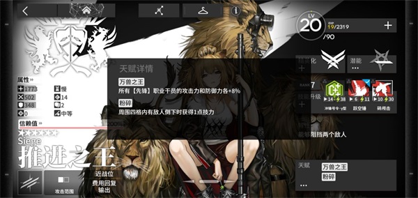 天赋简要分析:对于自身的攻击力有一定的提升效果,且加快全体干员的再部署时间,能够为工具人支援打法提供很好的基础条件;反隐能力则能够减小敌方隐匿单位不断消耗带来的医疗压力,使我方阵线尽早对其发动攻势,可以理解为是间接输出手段