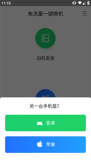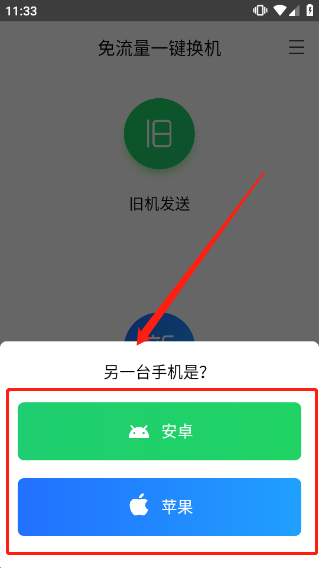 3、点击后,下方会提示另一台手机是什么设备。点击安卓手机或者苹果手机。