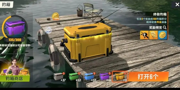 升到8级开放商城之后,在【商城-钓箱】里每天免费获得两次随机颜色箱子【先免费购买一个,再右上角一次免费刷新再次购买】。