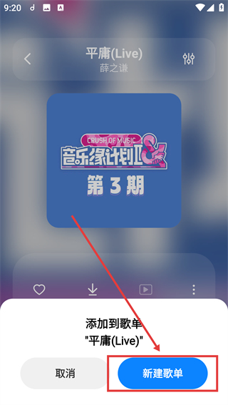 4、在添加到歌单界面,点【新建歌单】按钮,就能创建专属歌单,把当前歌曲存进去哦。