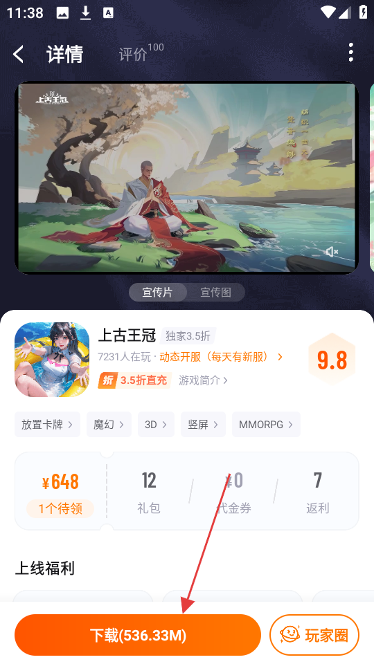 2、进入游戏详情页,点【下载(536.33M)】就能安装游戏,赶紧行动起来哦。