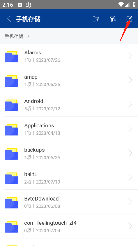 1、进入在多多免费下载的zarchiver,打开文件界面,点击手机存储。