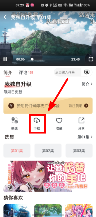 1、首先在软件中找到自己想看的动漫,然后进入播放界面,点击下方的下载。