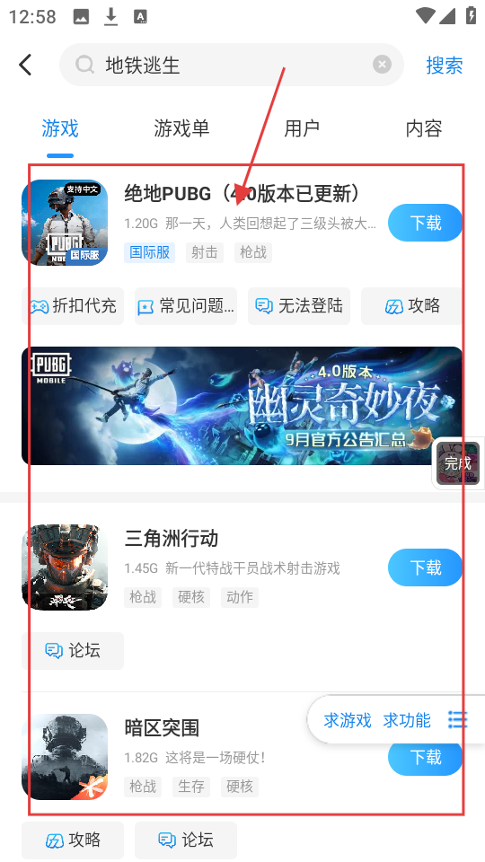2、搜索结果出来后,能看到多款相关游戏,选中心仪游戏,点击就能进入游戏详情页面咯。