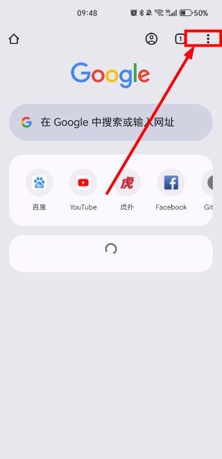 1、进入【Google-Chrome】主界面,点击右上角的三点菜单按钮,可展开包含设置、历史记录等功能的操作列表。