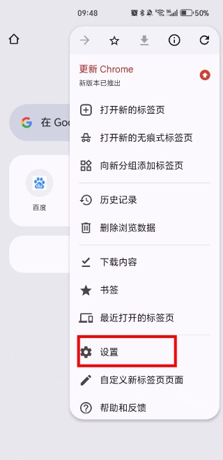 2、在展开的菜单中,选择【设置】选项,进入浏览器的配置页面,可管理登录、搜索引擎等多项功能。