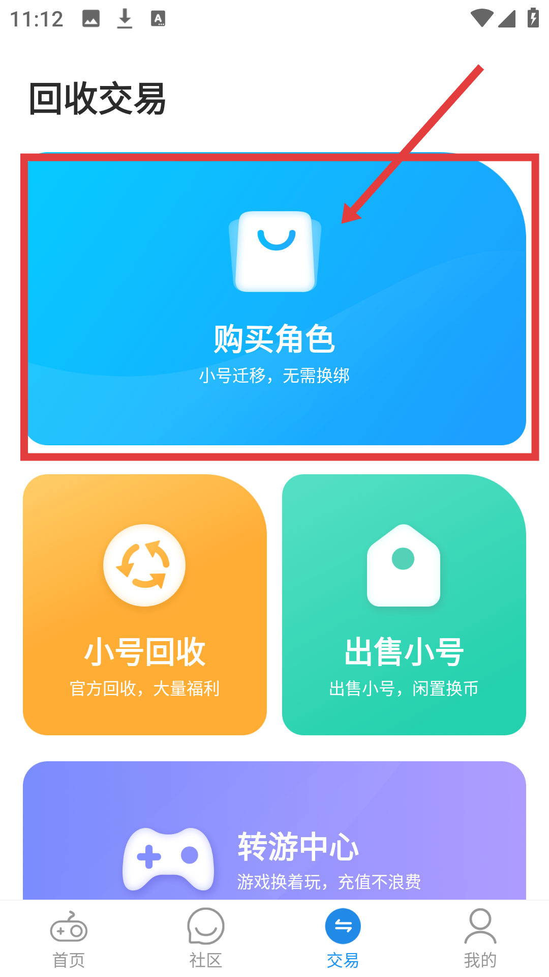 1、在交易界面点击【购买角色】,进入游戏搜索界面,准备选购游戏角色哦。