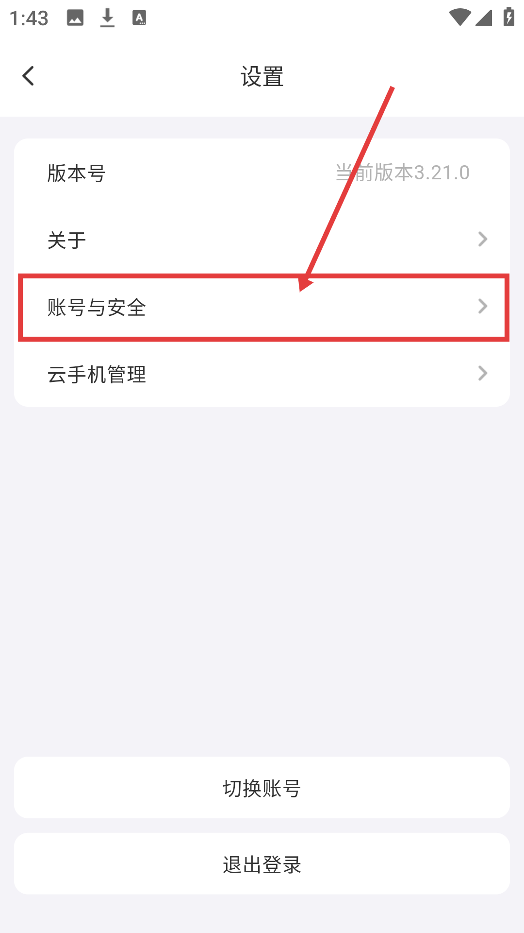 2、在设置界面点击【账号与安全】,进入账号与安全界面啦。