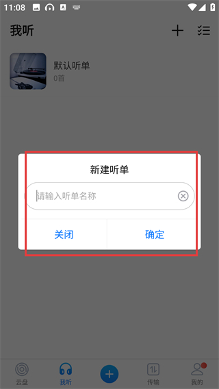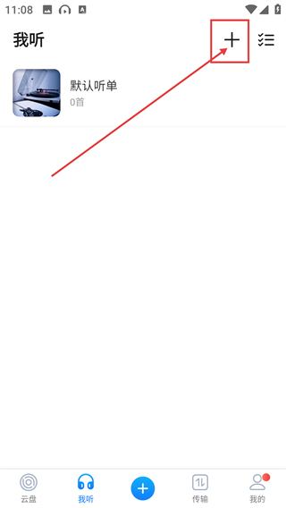 3、切换到【我听】页面后,点右上角的【+】按钮,就能触发新建听单的操作界面啦。
