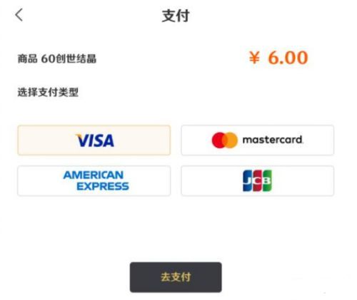 3、需要注意的是,国际服支付方式并没有国内玩家常用的支付方式。国际服支付需要VISA支付、万事达支付等,有对应信用卡的玩家可以使用这两个方式进行充值。下面两个方式则是国外的充值方式,国内玩家基本无法使用。玩家也可找国内代充平台充值。