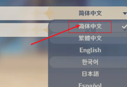 4、找到语言(language)按钮,点击打开,在右侧可以调整游戏语言,选择简体中文(Chinese)即可。