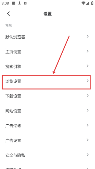 2、在设置界面点击【浏览设置】,进入浏览设置界面,准备调整浏览相关功能啦。