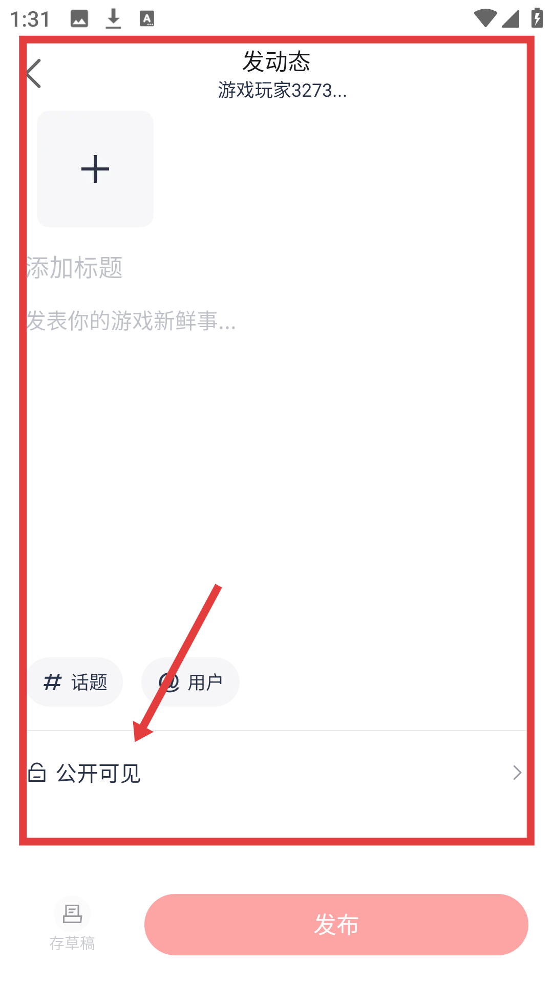 3、在发动态页面编辑动态内容,还可设置动态的可见范围等哦。