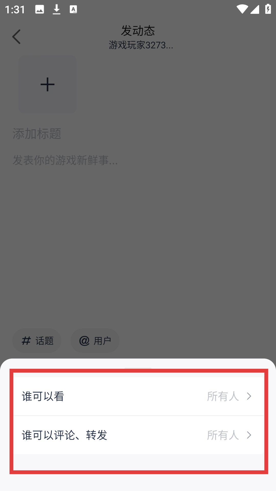 4、在可见范围设置页面可设置谁可以看、谁可以评论转发等,定制动态权限啦。