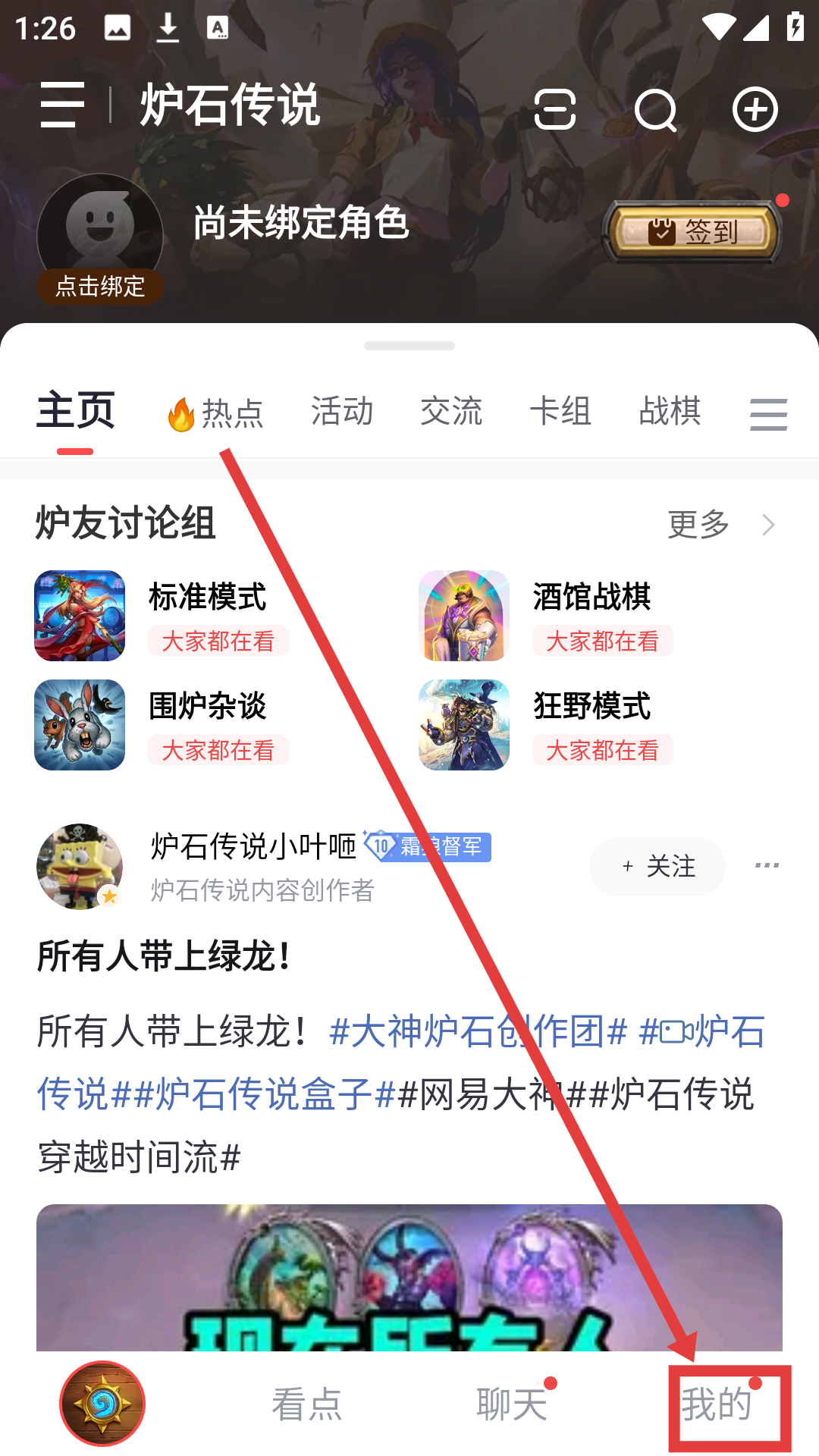 2.打开炉石传说盒子之后,点击我的,登录自己的炉石传说账号;