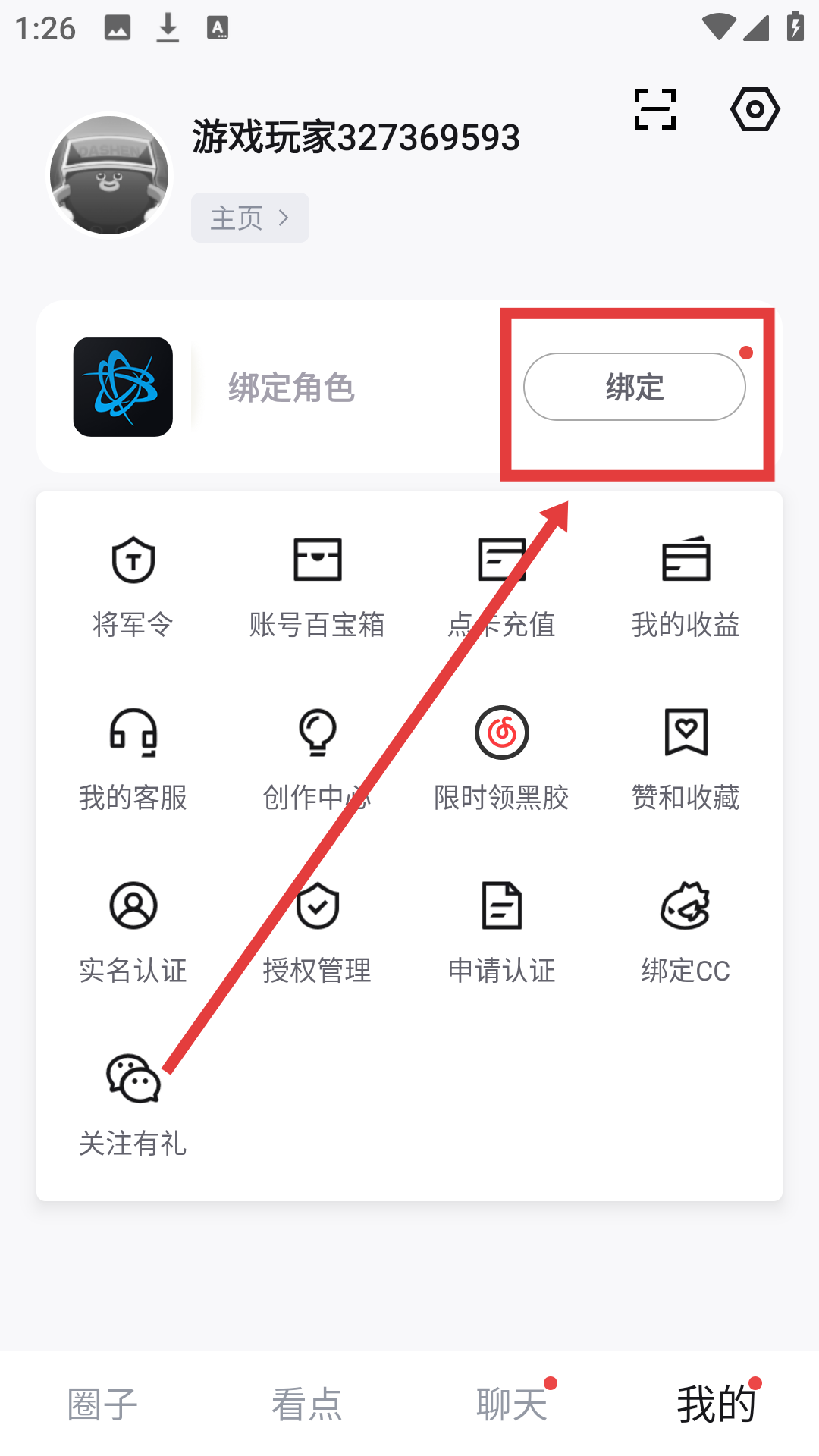 2、在个人界面点击【绑定】,可进入角色绑定流程,开启游戏角色绑定啦。