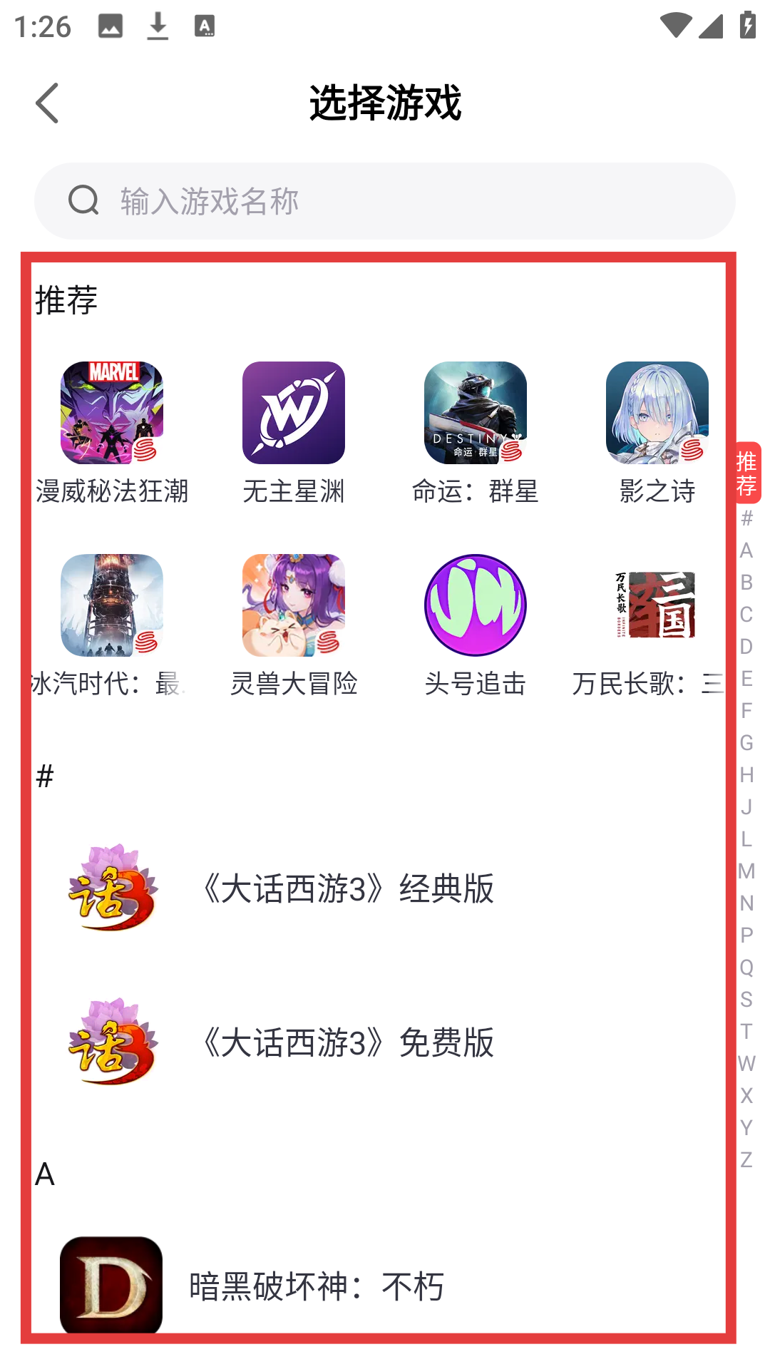 3、在选择游戏界面挑选要绑定的游戏,点击即可进入游戏账号选择界面哦。