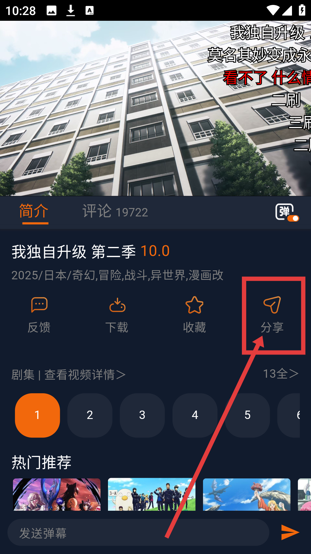 2、在动漫播放界面点击【分享】,可展开分享选项,选择分享方式啦。