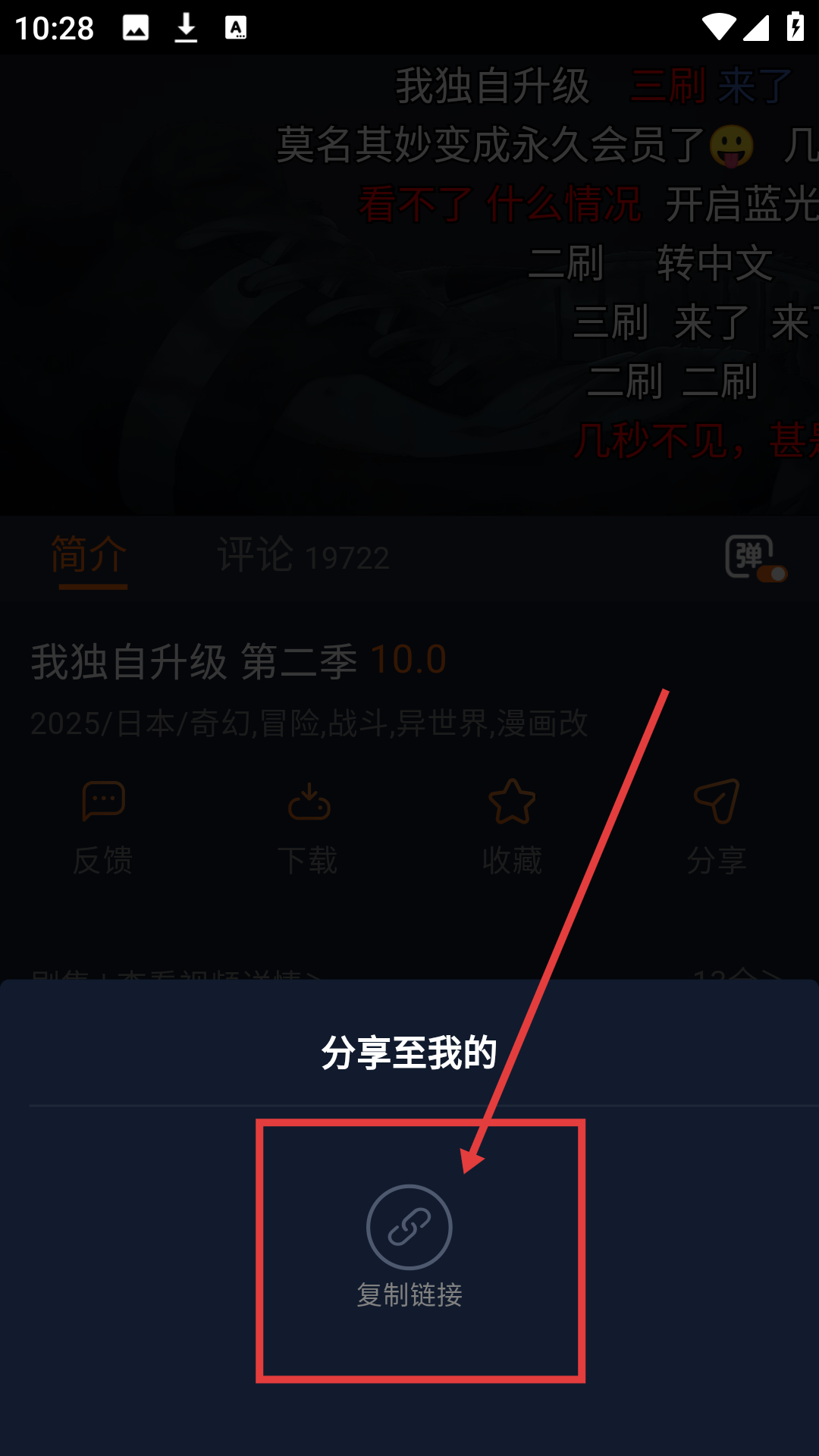 3、在分享选项中点击【复制链接】,可将动漫链接复制到剪贴板哦。