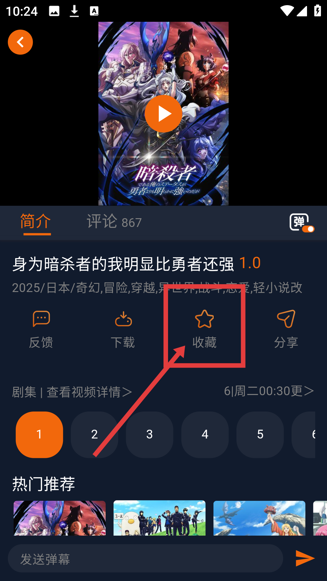 1、在软件频道页面,可浏览推荐的日漫、国漫等,选择感兴趣的动漫,如《身为暗杀者的我明显比勇者还强》,进入其详情页啦。
