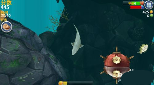 进入伪海域,伪冰海在锤头鲨的初始海域进入成功率比较高,尽量以45度角,从左往右飞,吃到飞鸟,出现慢动作时,点击海螺,进入暂停,等待几分钟后,进入成功。在伪海域里面你就放吃吧,尽情的捞金币和赚取高分吧。