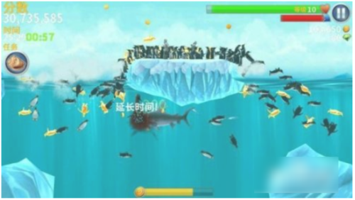 通过最初的初始海域,进入南极,吃里面的企鹅,人,冰激凌,鱼类会获得大量金币。因为每天只能进入一次南极,所以这里可以通过修改手机时间,达到间隔12小时的要求,就又可以进入南极刷金币了,反复以上操作,可以无限刷金币。