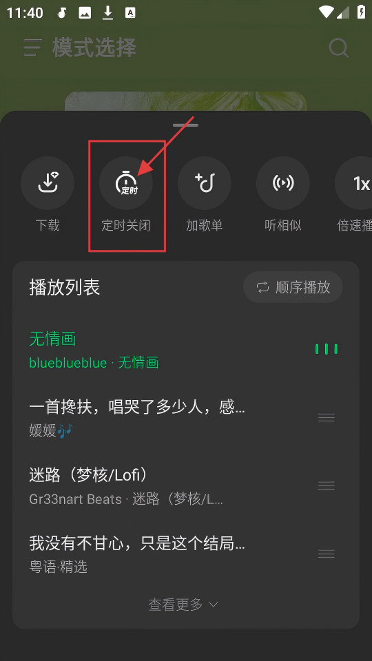 2、展开操作选项后,有【定时关闭】功能,点击它,可进入定时关闭设置界面,超实用的。