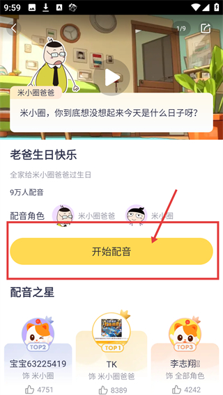 4、进入配音准备页后,点【开始配音】就能跟随提示为对应角色配音,完成趣味的故事配音任务哦。