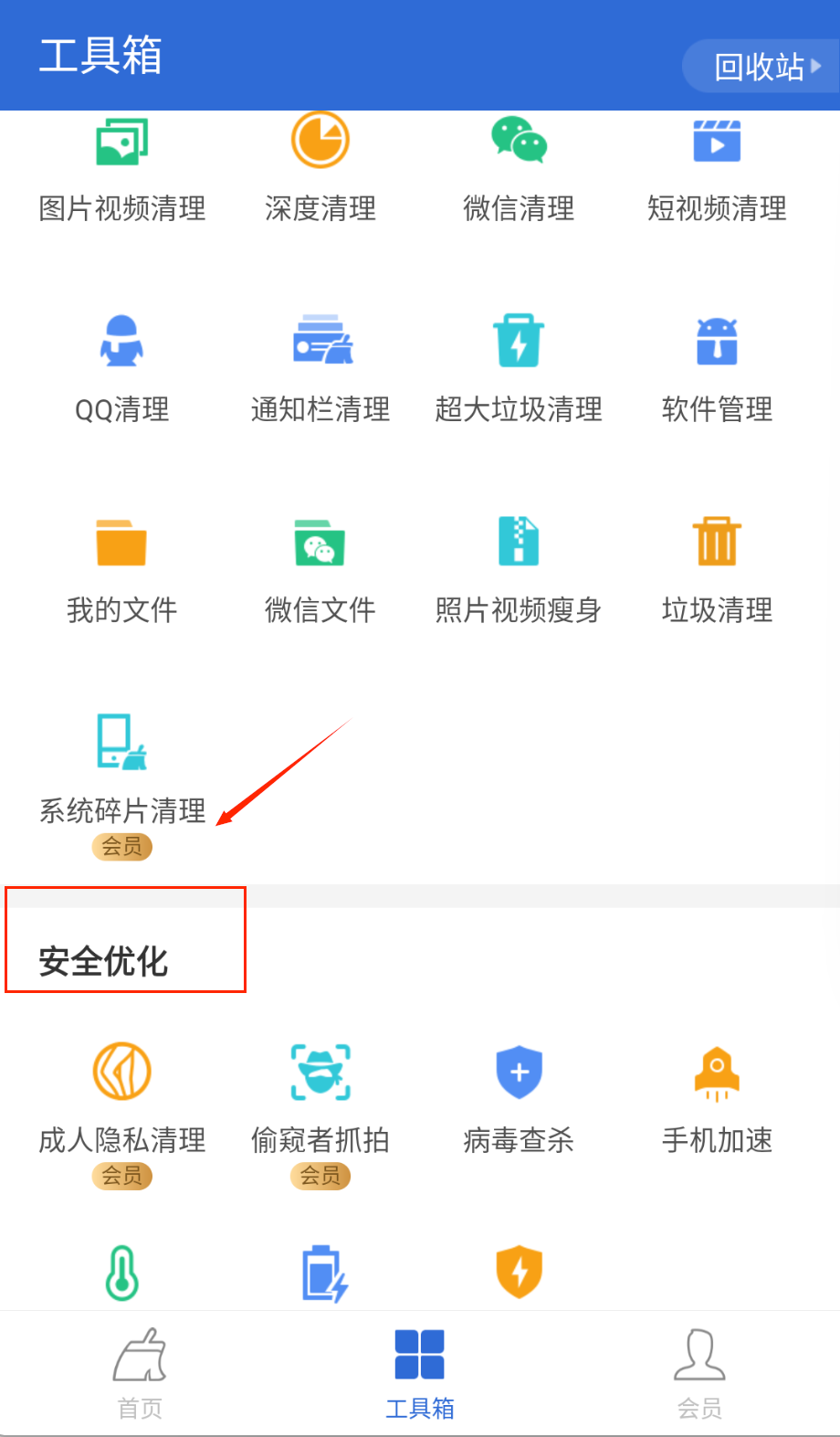 2、使用深度扫描功能需要点击常用功能在常用功能的安全防护里面才能找到;