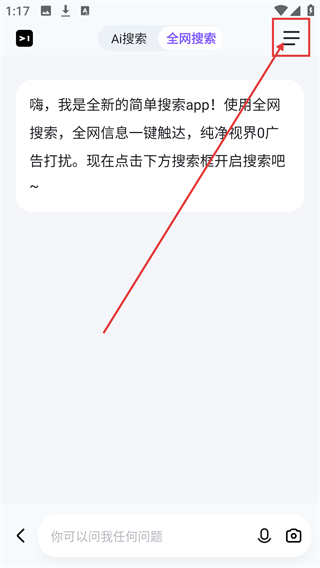 1、在简单搜索app首页,点右上角菜单按钮,能打开功能菜单,找到各类辅助功能选项哦。