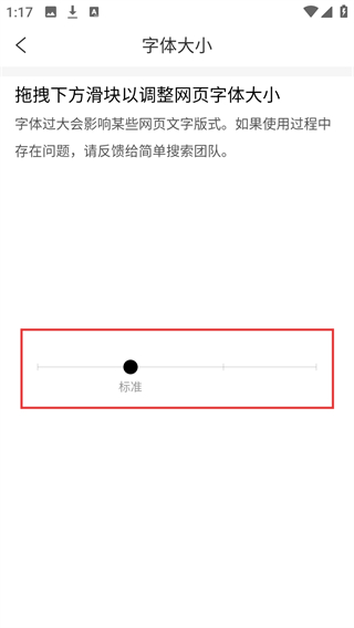 4、进入字体大小页后,拖拽滑块就能调整网页字体大小,按需设置成舒适的显示尺寸啦。