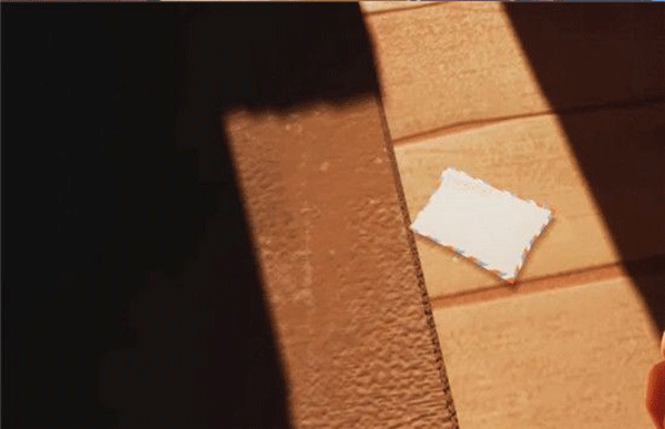 2、邻居家的钥匙在左边二楼红窗旁边蓝色的桌子上,在自己家一楼卧室拿到纸箱子,去邻居家门口左边梯子上去放上两个纸箱子,然后跳到屋檐上。