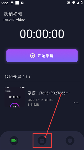 1、在录制视频页面点击底部的功能按钮,就能进入视频编辑功能界面,解锁各类视频处理工具啦。