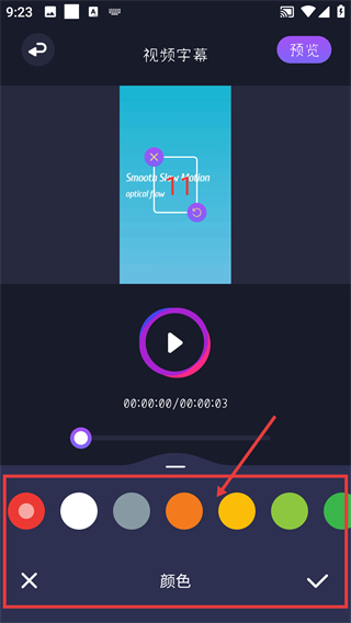 4、添加字幕后点击颜色选择栏,挑选喜欢的颜色(如黄色),就能调整字幕的显示色调啦。