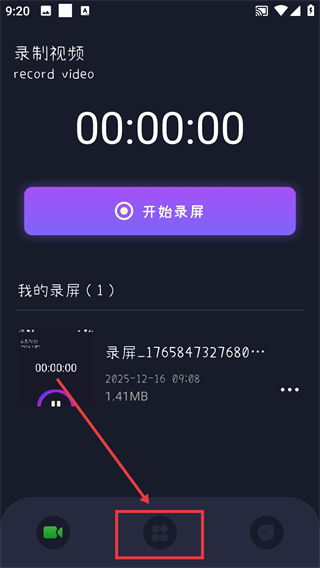 1、在录屏页点底部的功能按钮,能进入视频编辑功能界面,后续可对录屏进行剪辑等操作啦。
