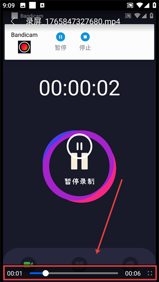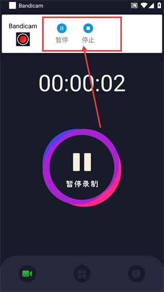 2、录屏过程中点顶部的【暂停】或【停止】按钮,可按需暂停录制或结束录制,操作很灵活哦。