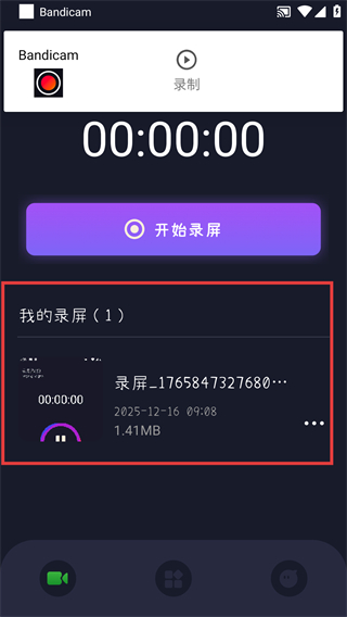 3、录制完成后,在【我的录屏】区域能看到刚生成的录屏文件,可后续查看或管理这些文件呀。