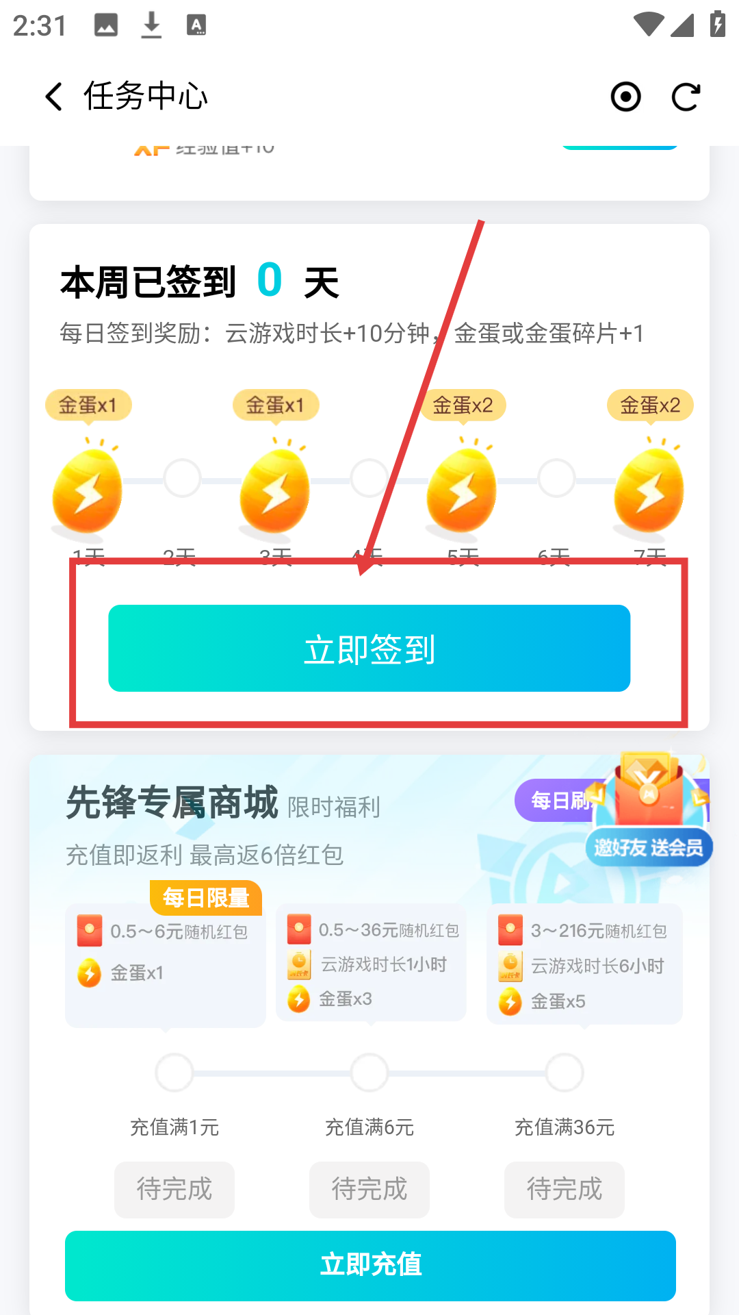 2、进入任务中心后,点击【立即签到】,可完成每日签到啦。