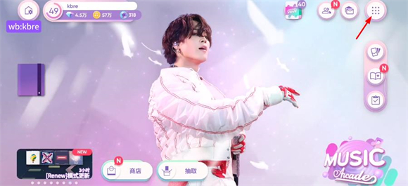 1、首先打开在本站下载的Rhythm Hive游戏,在主界面中点击右上方的9个点按钮。