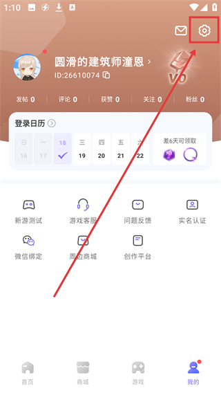 2、在个人中心点击右上角设置图标,进入设置界面,可管理账号相关功能啦。