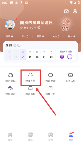 2、进入个人中心后,找到【游戏客服】选项并点击,可进入客服对话界面,准备咨询问题哦。