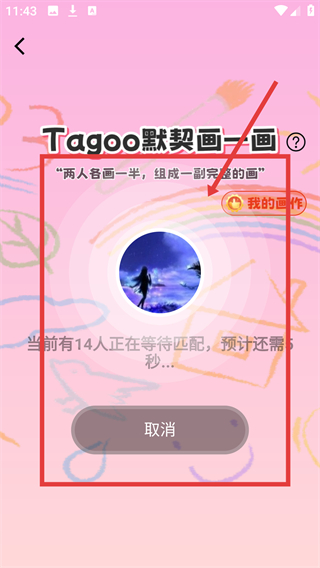 3、在匹配页面,会显示等待人数和预计时间,耐心等待就能匹配到对手,开启绘画互动啦。