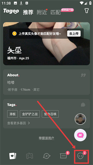 1、在推荐页浏览用户资料时,点击底部对应按钮,就能进入互动功能界面查看相关记录啦。