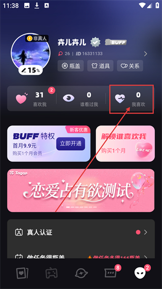 2、在个人界面点击【我喜欢】选项,进入对应的列表页,就能看到自己标记喜欢的用户啦。