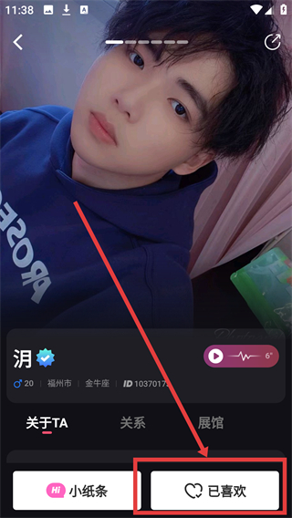 4、在用户详情页点击【已喜欢】按钮,即可取消对该用户的喜欢标记,操作超简单哦。