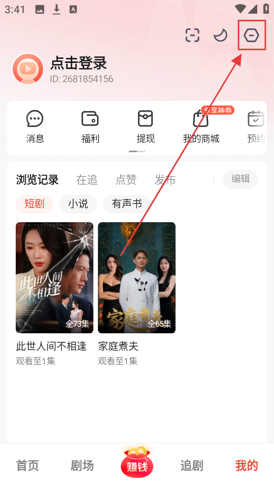 2、在个人页面里,找到右上角的设置图标并点击,就能进入设置页面,去调整软件的各类设置啦。