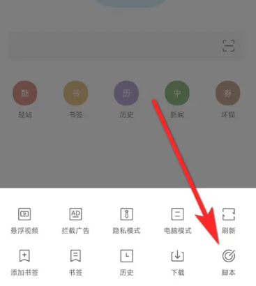2、在菜单栏中,找到脚本功能菜单,点击进入脚本;