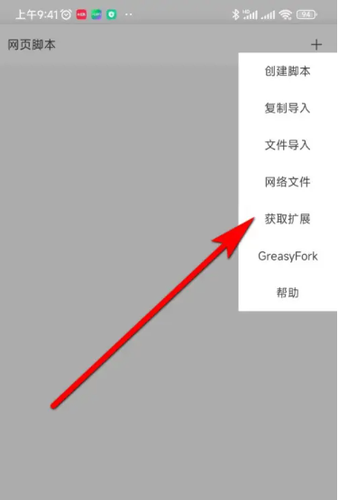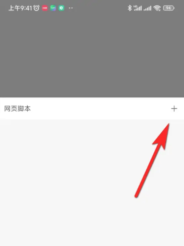 3、在网页脚本页面中,找到右上角的+符号,点击;